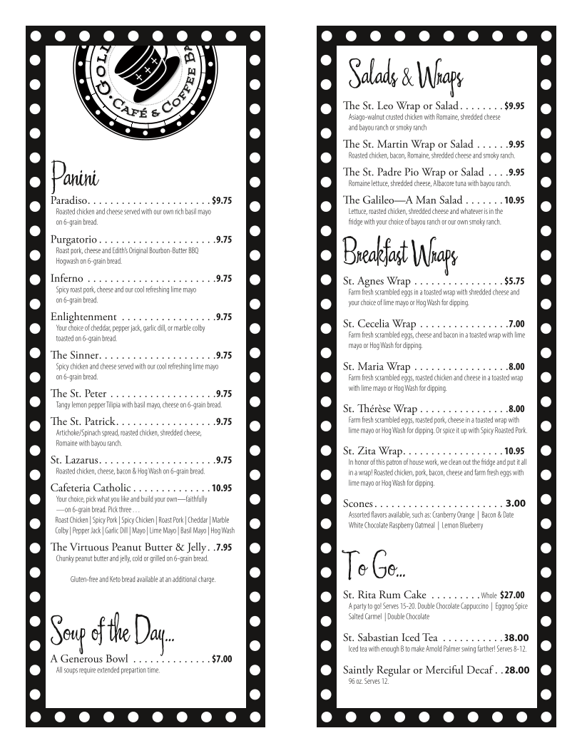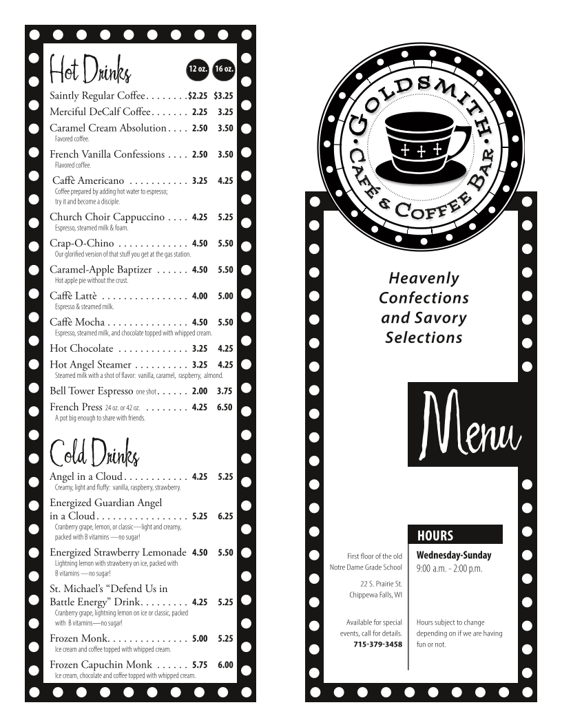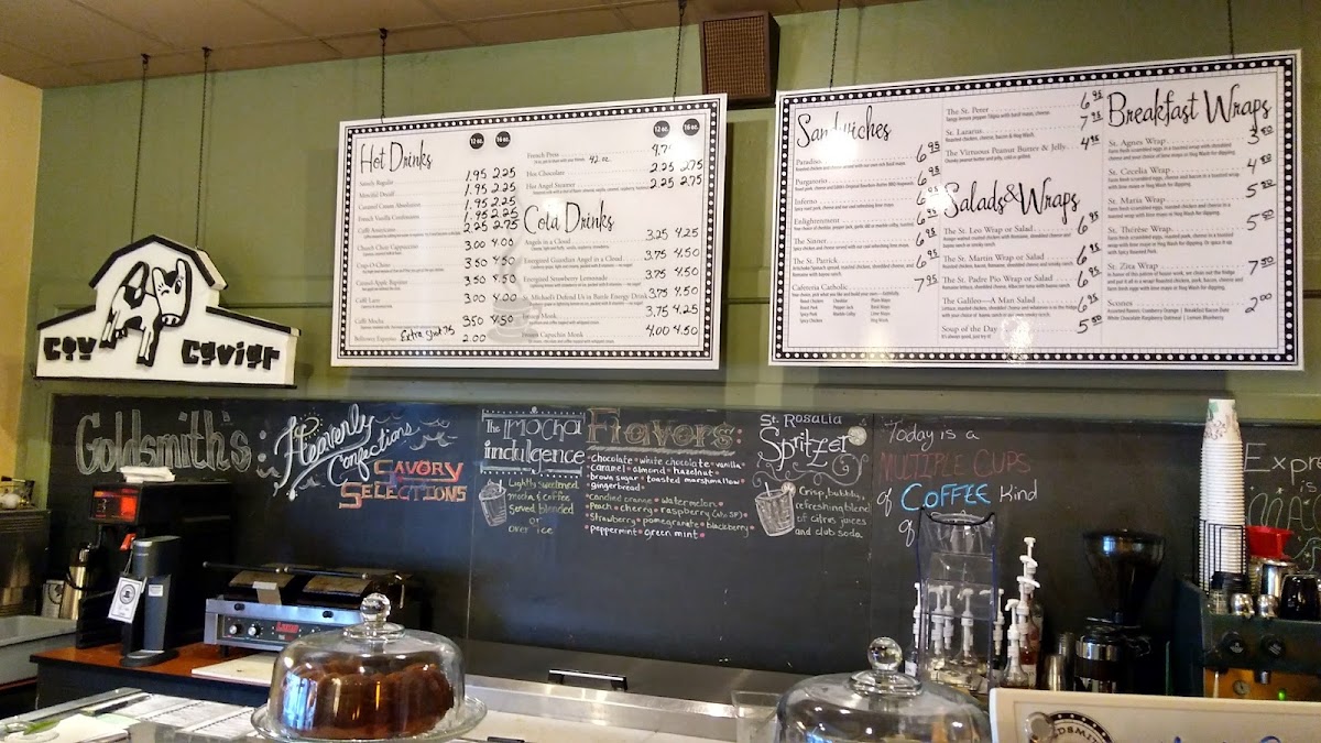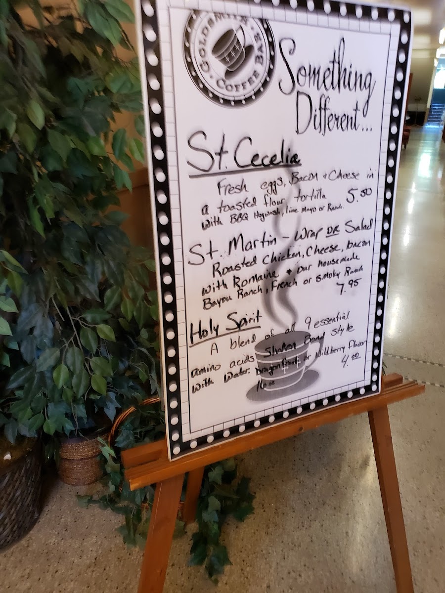 The café boasts a diverse menu that caters to coffee aficionados and casual diners alike. Kick start your morning with a cup of Saintly Regular Coffee or the enticingly flavored Caramel Cream Absolution, designed to delight your taste buds with hints of sweetness. Want something heartier? Goldsmith’s range of delicious sandwiches, wraps, and breakfast options promises to satisfy with every bite. The breakfast wraps are a family favorite and perfect for those on the go!